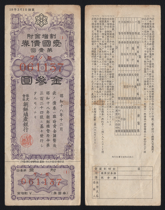 1943 Á¶¼±½Ä»êÀºÇà Á¦1ȸ ¾Ö±¹Ã¤±Ç 3¿ø(¹Ìǰ)-061137